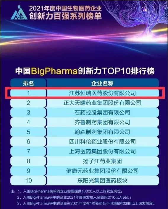 蝉联榜首!AG亚娱医药再次登顶“中国BigPharma企业创新力TOP10排行榜”